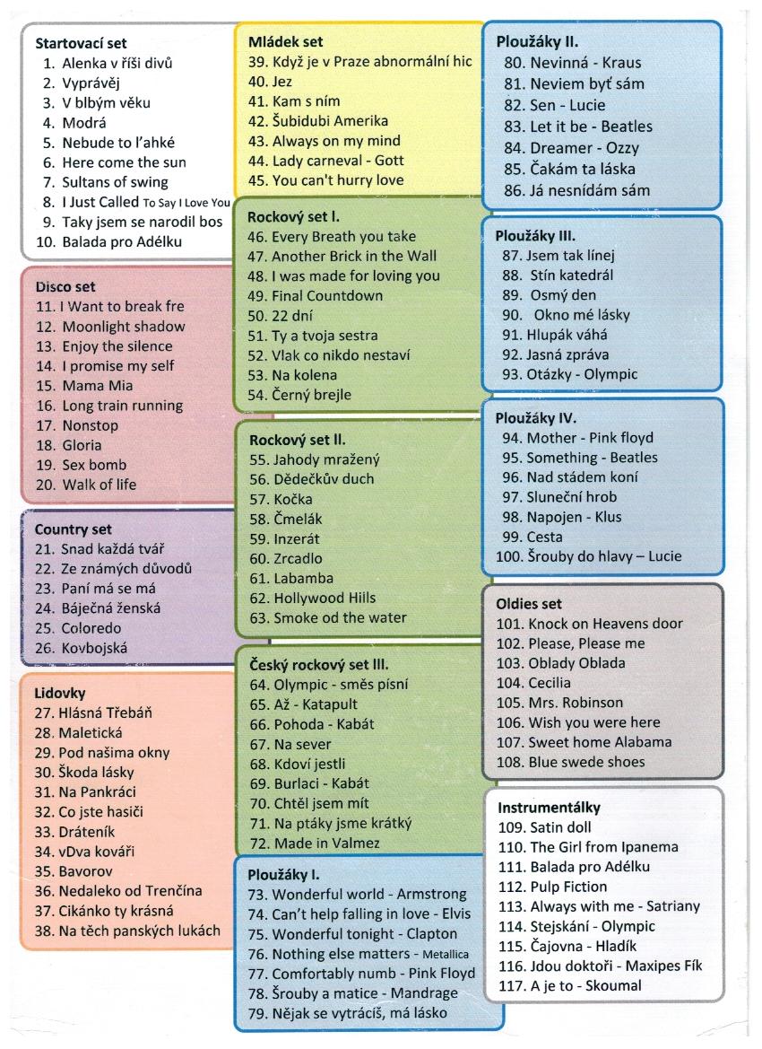 | S.P. Band - Seznam skladeb |